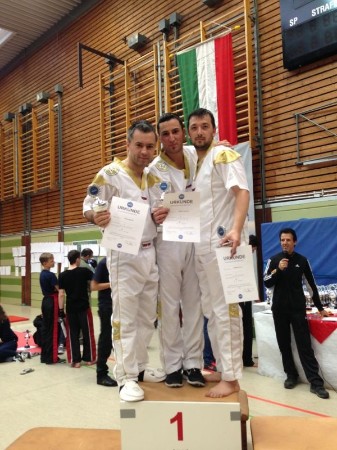 Zusätzlich haben unsere Sportler Abdullah Cavus, Hüseyin Semerci und Tunay Semerci, in einer Kampfgemeinschaft mit Kampfsportcenter Köln (mit Ümmügülsüm Aksoy), am Teamkampf teilgenommen und konnten sich im Finale gegen das von Peter Zaar (Präsiden WAKO-Deutschland und LK-Bundestrainer) betreute Team Hara e.V. durchsetzen und den ersten Platz belegen.